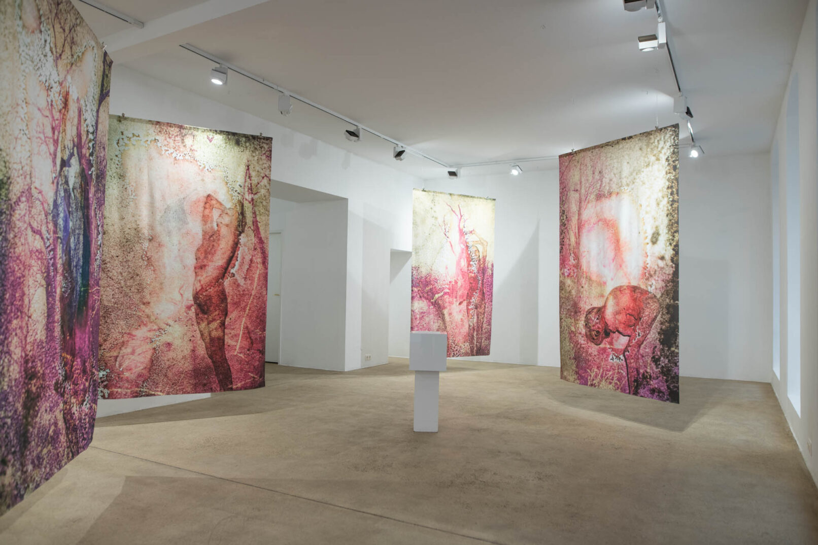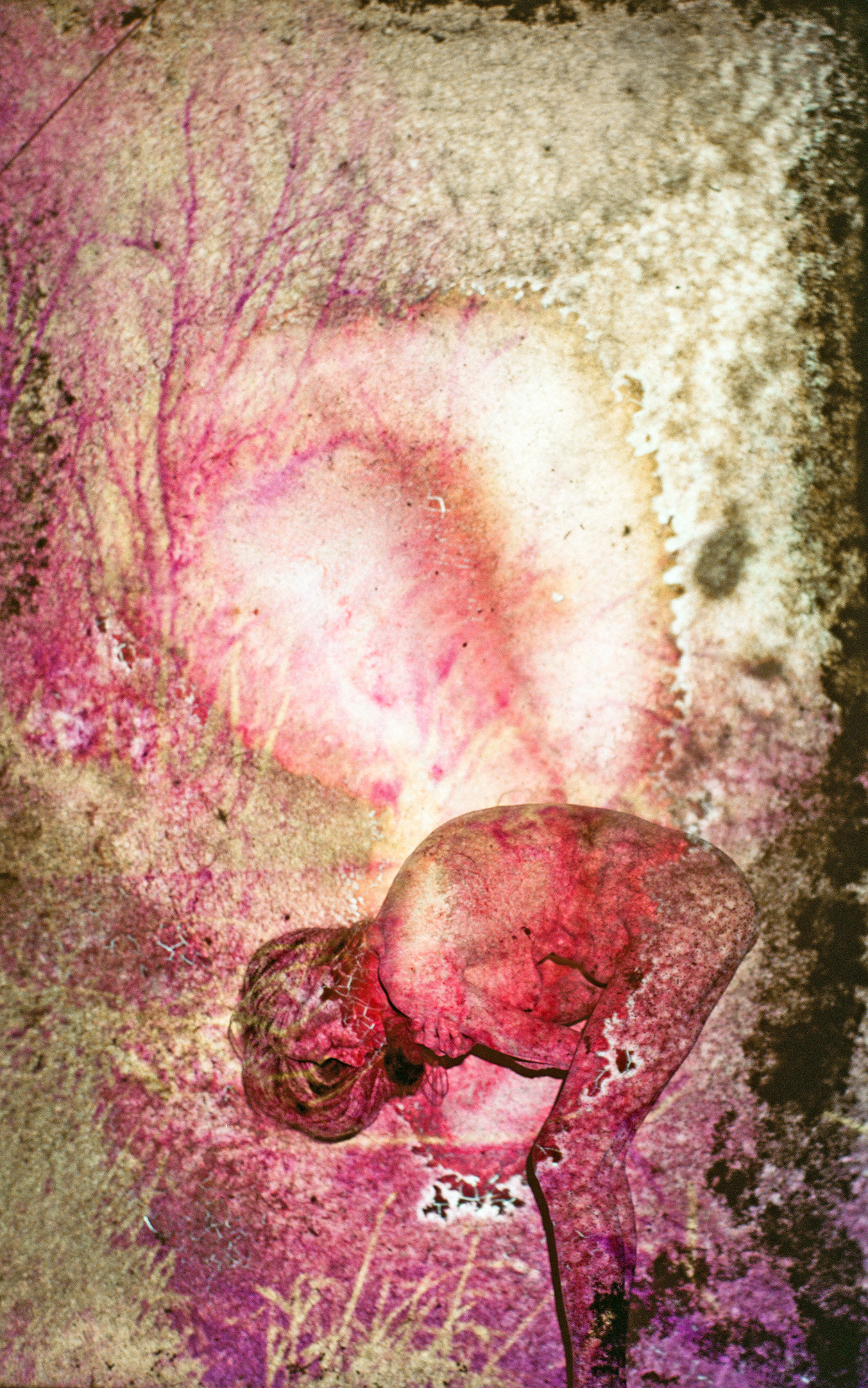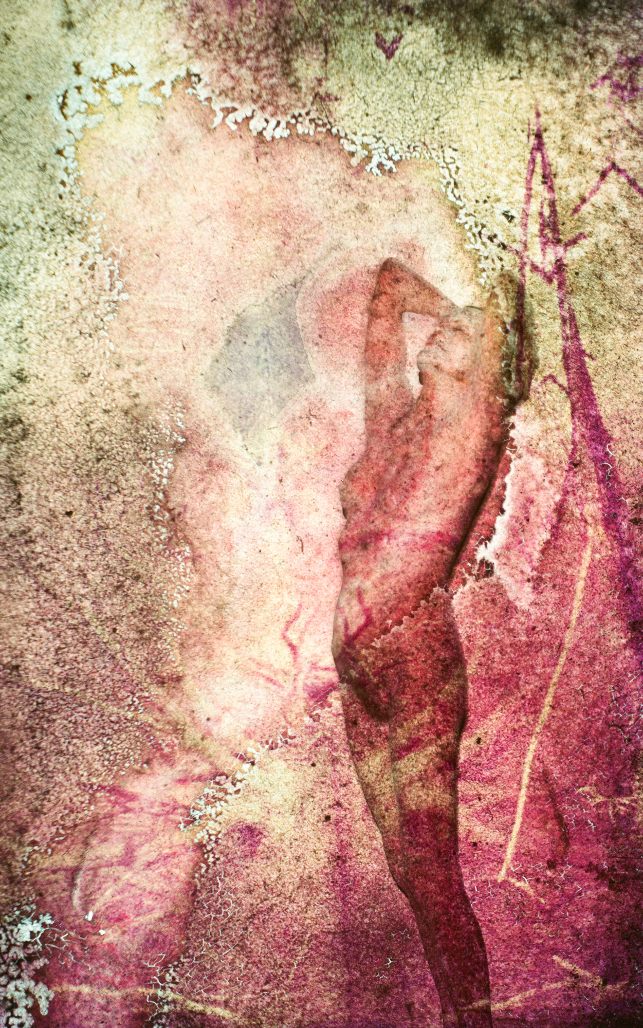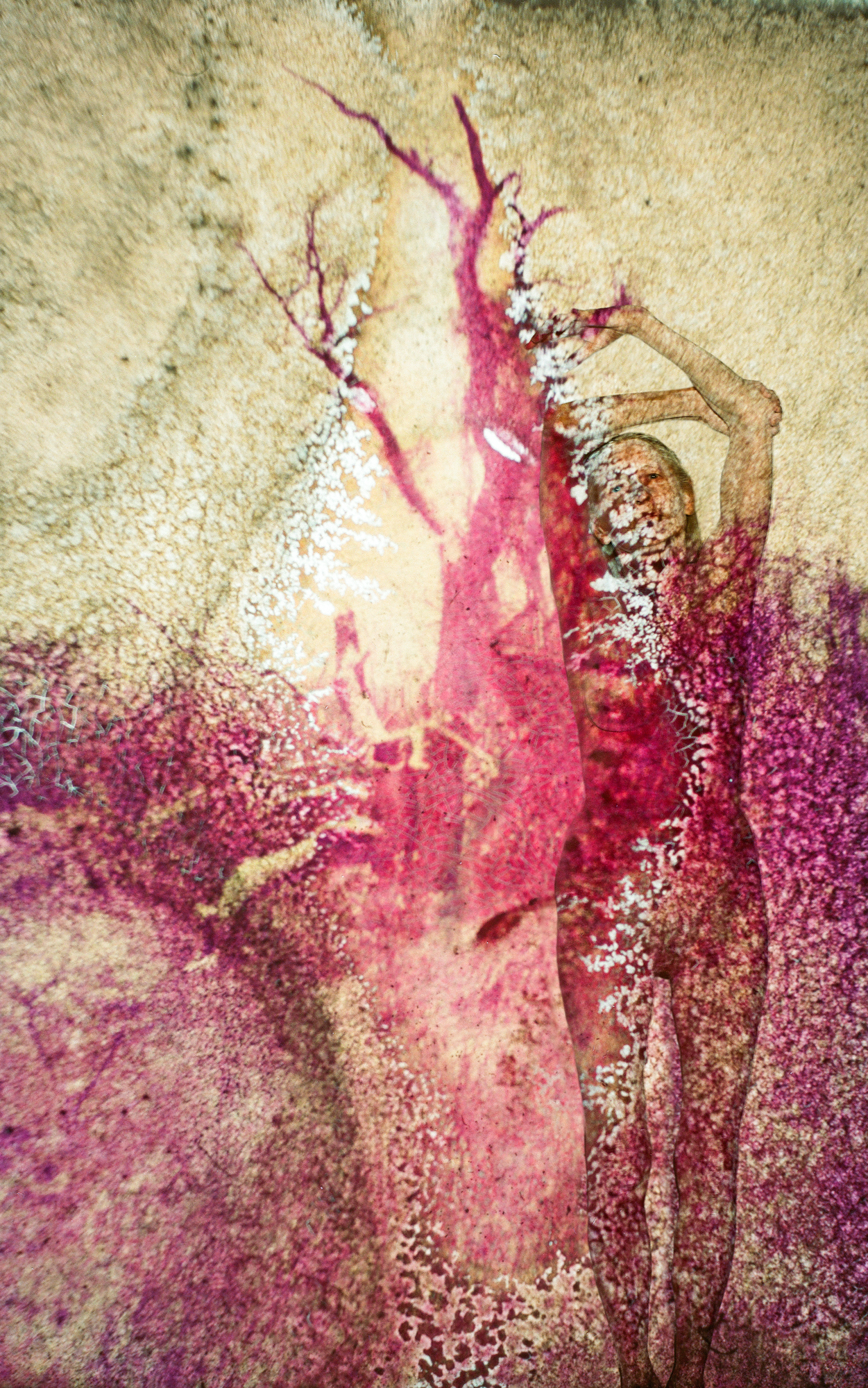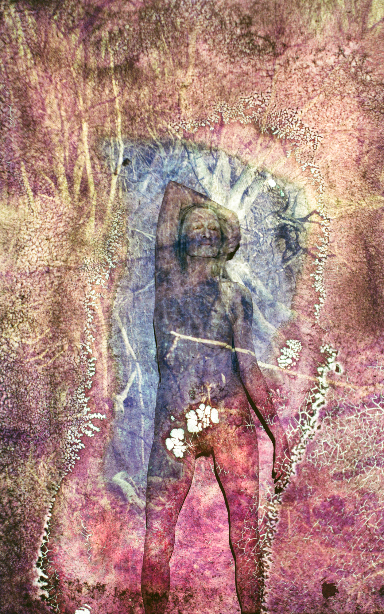 Die in den Bildern projizierten Dias von Pflanzen, Bäumen, Sträuchern, deren Positive jahrelang den Prozessen der Schimmelbildung ausgesetzt waren, schaffen dabei die gleichzeitige Gegenwart einer Vergangenheit des Wachsens und einer Zukunft des Vergehens. Sie schreiben dem Körper seine Zeitlichkeit als eine Spur des Werdens und einen Zustand der Metamorphose ein, verschmelzen mit seinen Kurven und Konturen, seinen Windungen und Streckungen. Grundlegende Prozesse des Alterns, Verwelkens und Gedeihens – alles fließt bei näherer Betrachtung so stark ineinander, bis man die verschiedenen Ebenen der Bilder kaum mehr unterscheiden kann.