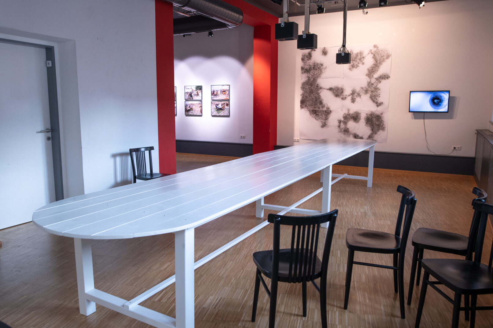 A table that stands as a metaphor for communication and exchange, in order to be able to achieve something together in the sense of emergence. What does a conversation sound like? What would it be like if people from different cultures were sitting at the table, eating and talking? What would it sound like, what would the sound be like?
